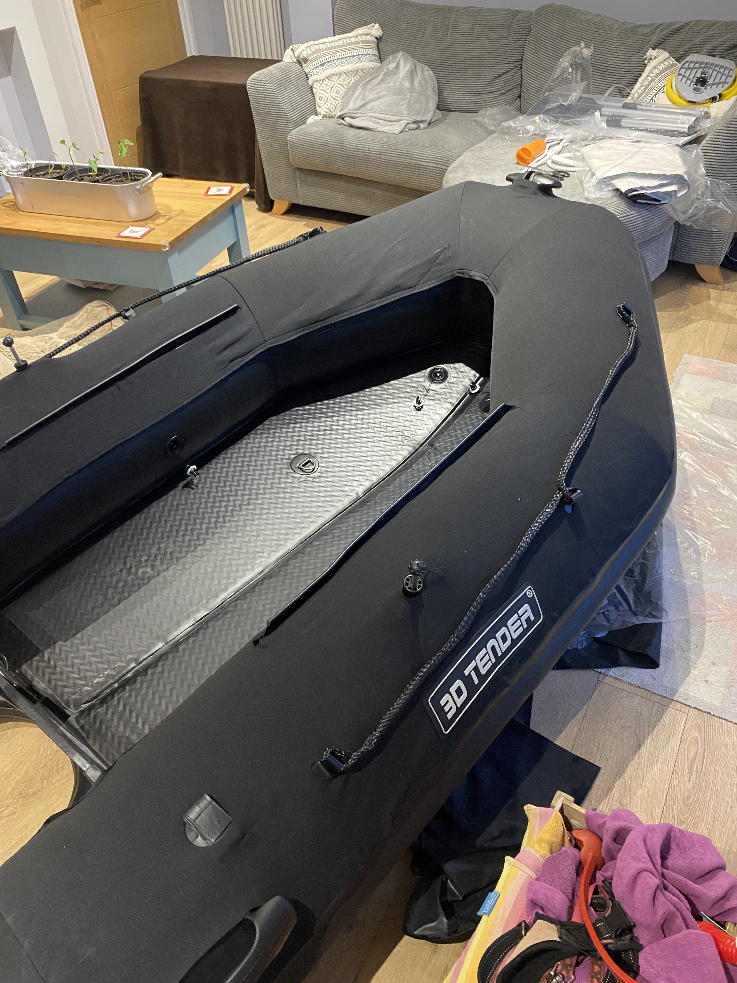 Hi I have a nearly new, used 3 times 3D tender, inflatable floor, pump , oars , storage bag, has black and white inter changeable covers, tender is black and and light weight, 2.9 meters long cost £895